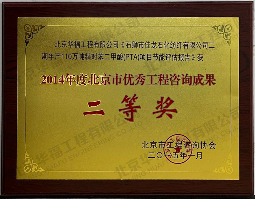 The Second Prize for Excellent Engineering Consulting Achievements for the Jialong Petrochemical Project