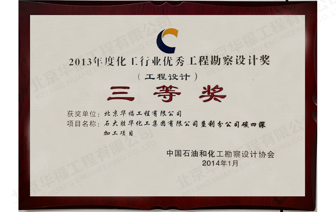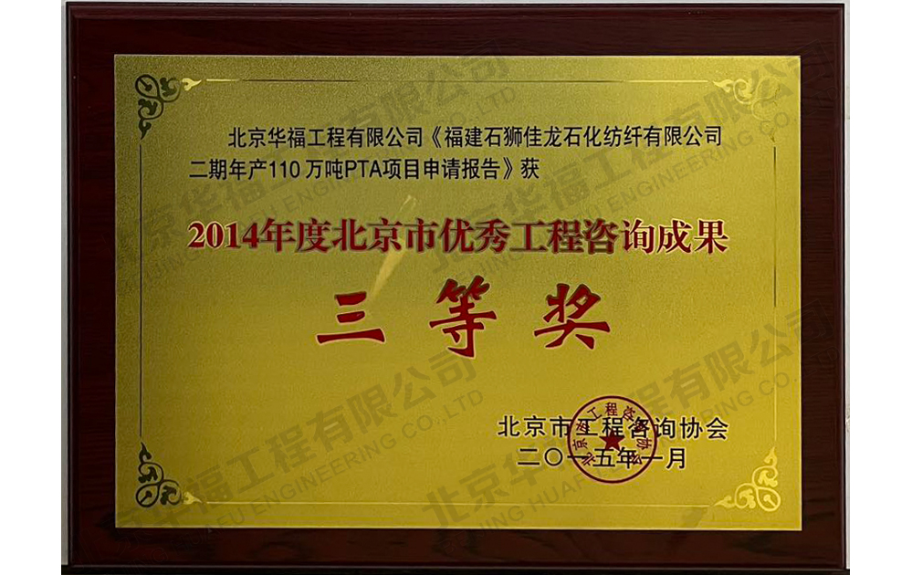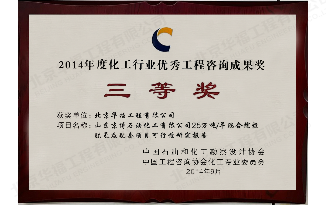 The Third Prize for Excellent Engineering Consulting Achievements for the Jialong Petrochemical Project