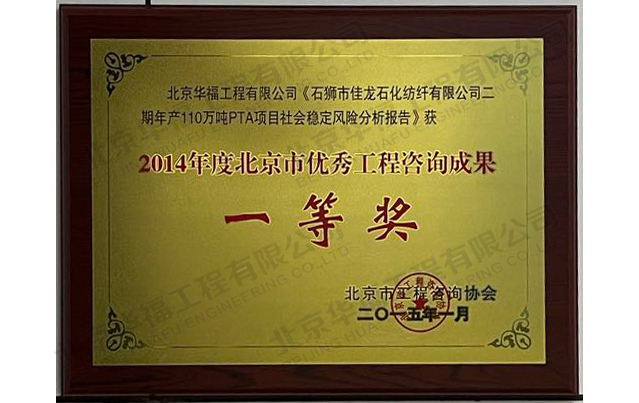 The First Prize for Engineering Consulting Achievements for the Jialong Petrochemical Project