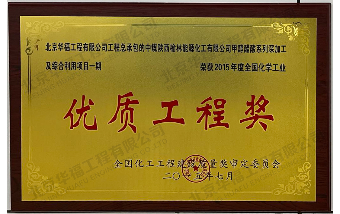 High-Quality Engineering Award for the Deep Processing Project of Coal-to-Methanol and Acetic Acid in Yulin by China National Coal Group Corporation